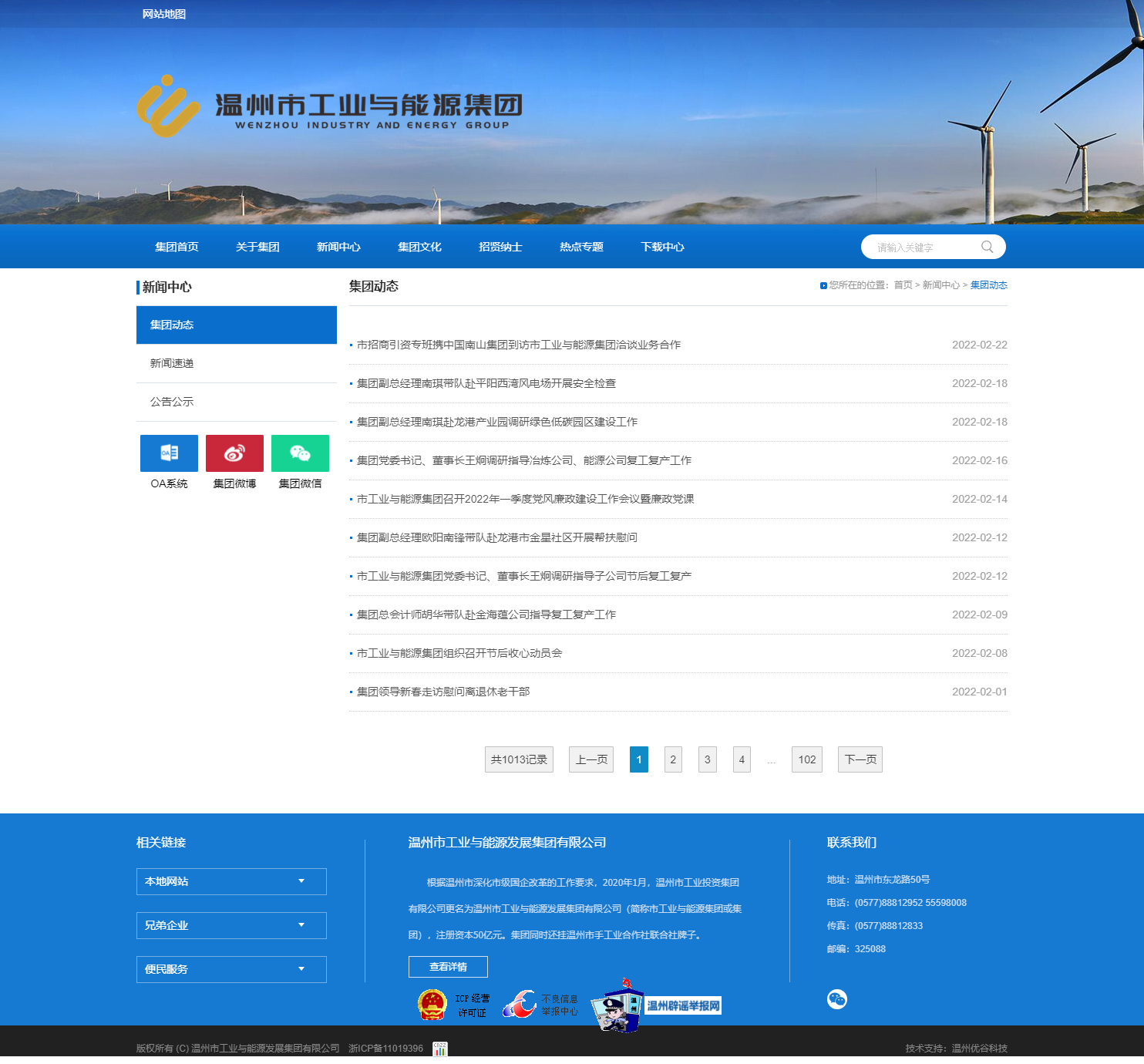 2020年1月,溫州市啟動國有企業(yè)深化改革,原溫州市工業(yè)投資集團優(yōu)化組建為現(xiàn)在的溫州市工業(yè)與能源集團,為溫州市十大國有集團之一,注冊資本50億元。集團同時還掛溫州市手工業(yè)合作社聯(lián)合社牌子。
