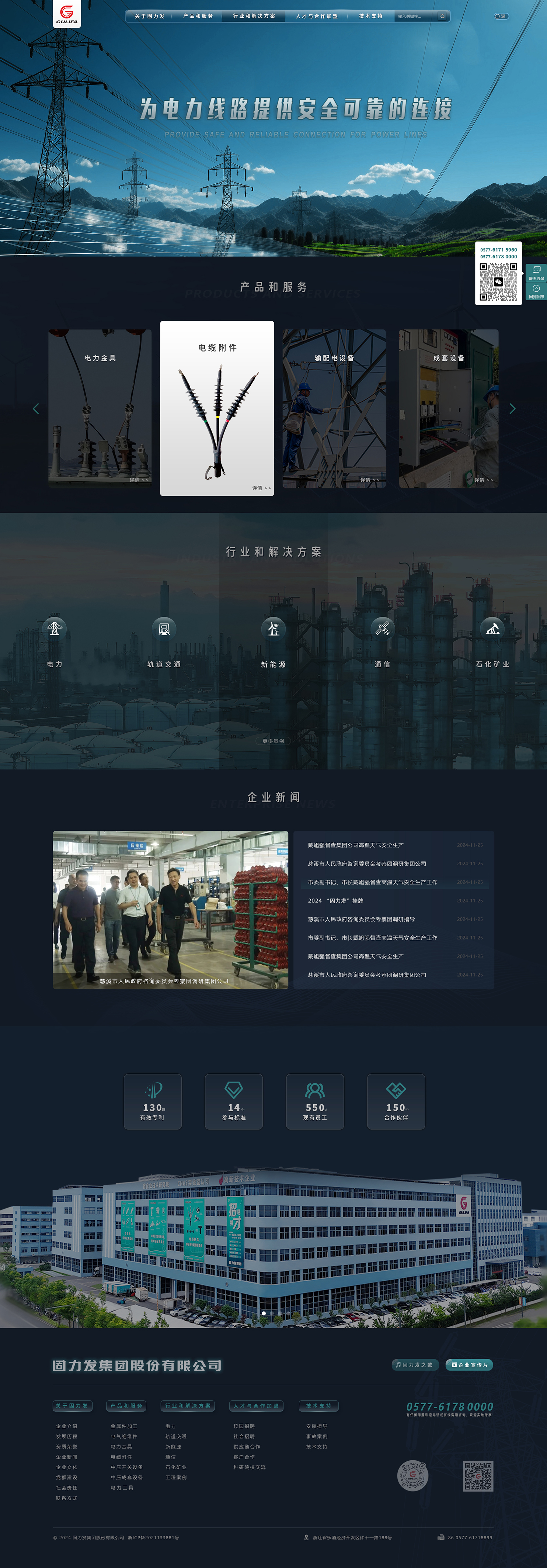 固力發(fā)集團(tuán)是電力金具和電纜附件等輸配電線路器材的專業(yè)化制造企業(yè),現(xiàn)有樂清、合肥兩個(gè)工廠,集團(tuán)公司現(xiàn)有員工550人。公司在業(yè)內(nèi)較早通過了ISO9001質(zhì)量體系認(rèn)證、ISO14001環(huán)境體系認(rèn)證、OHSAS18001職業(yè)健康和安全體系認(rèn)證、知識(shí)產(chǎn)權(quán)管理體系認(rèn)證、安全質(zhì)量標(biāo)準(zhǔn)化二級(jí)審查。獲得浙江省著名商標(biāo)、浙江省知名商號(hào)、AAA級(jí)守合同重信用單位、樂清市市長質(zhì)量獎(jiǎng)等榮譽(yù)。